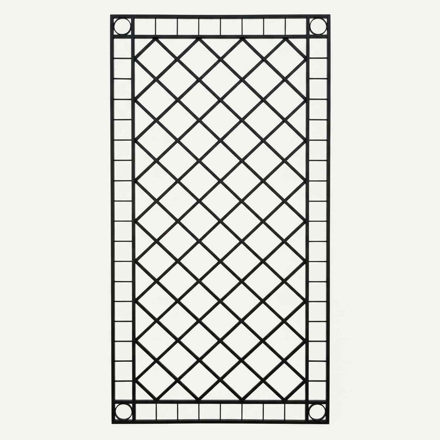Rankgitter Meran, GABELLA™ solide Marken-Qualität, hochwertige Handarbeit vom Hersteller, Meran: Modernes geometrisches Eisengeflecht im Kreuzverbund aus Flacheisen und auflockernden Ringen.