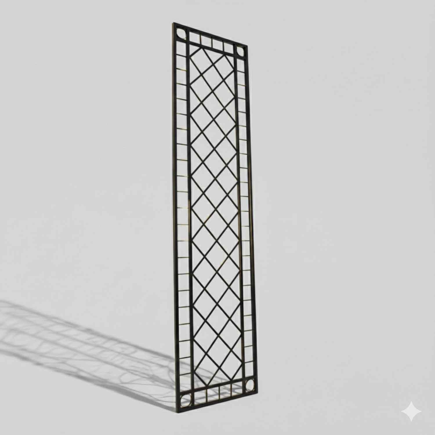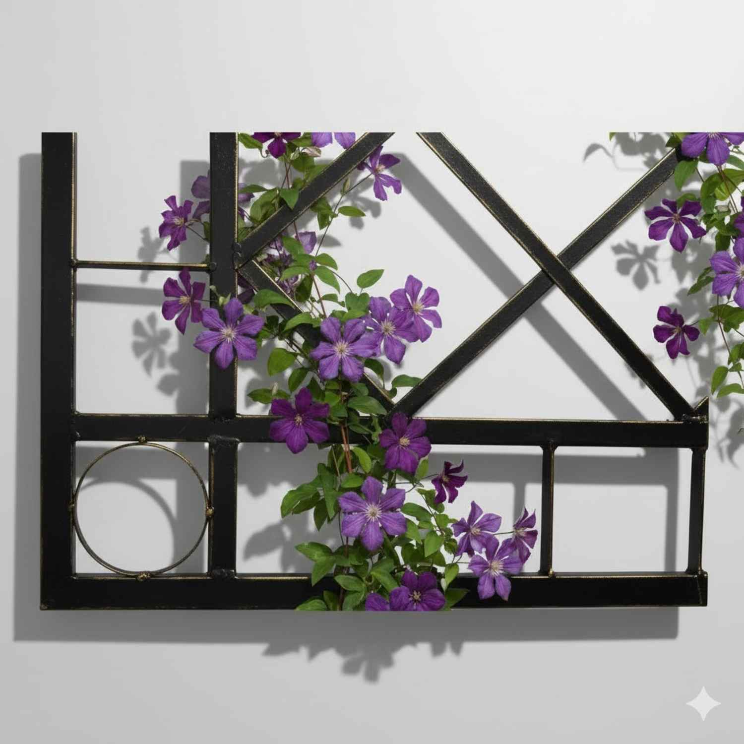 Rankgitter Meran, GABELLA™ solide Marken-Qualität, hochwertige Handarbeit vom Hersteller, Meran: Modernes geometrisches Eisengeflecht im Kreuzverbund aus Flacheisen und auflockernden Ringen.
