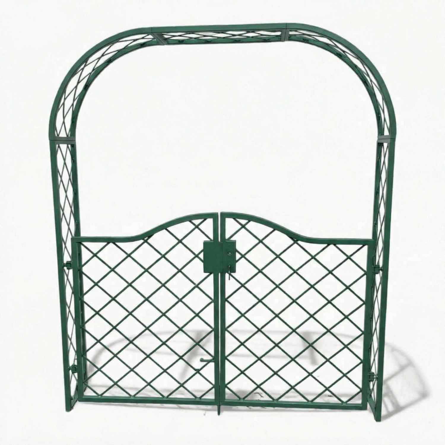 Rosenbogen mit Tür Bozen-RBGT-RBS 170/220, GABELLA™ solide Marken-Qualität, hochwertige Handarbeit vom Hersteller, Bozen: Dekoratives Eisenwerk mit Eisengeflecht im Kreuzverbund aufwendig und sauber von Hand gearbeitet und in den stabilen Rahmen eingefügt.