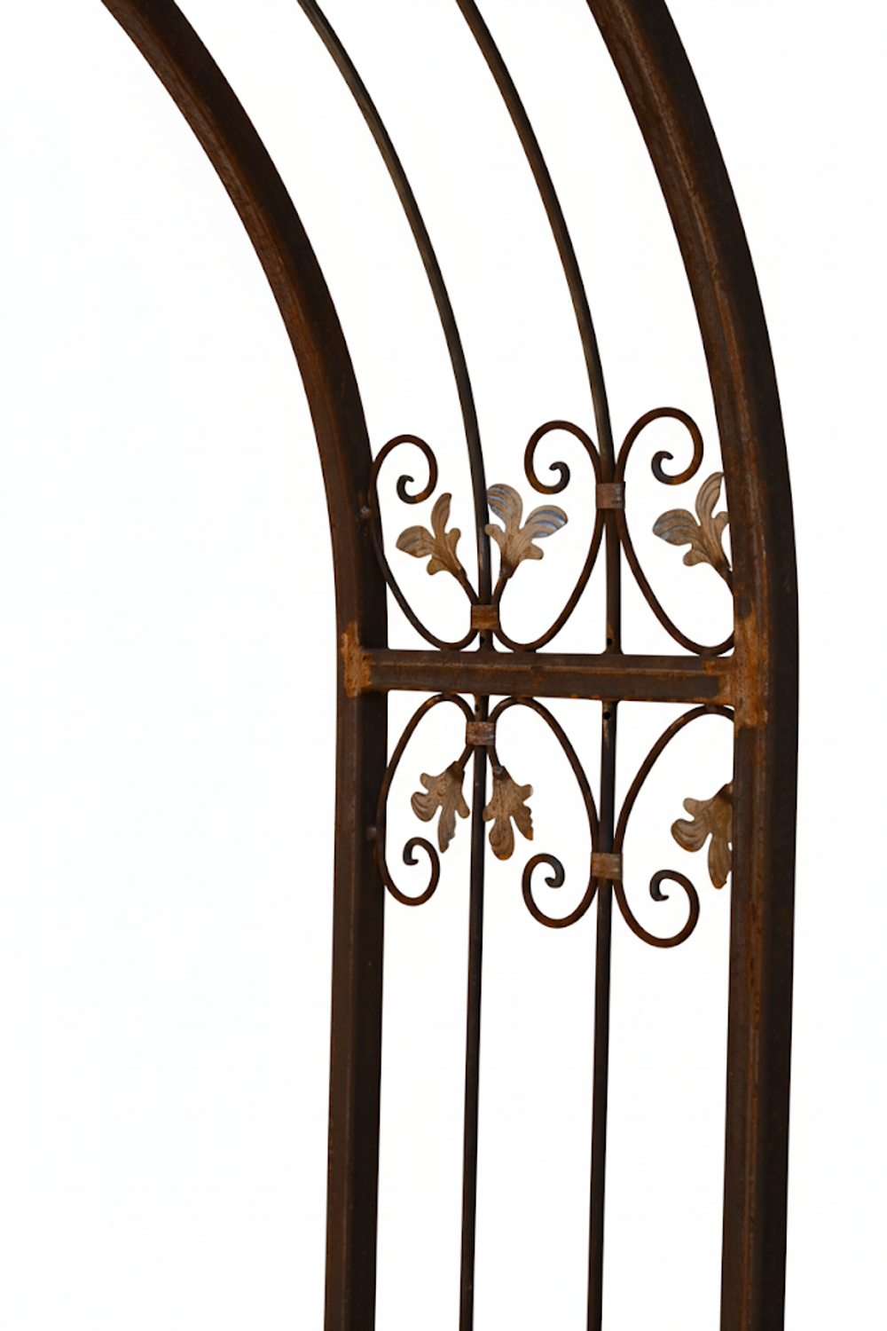 Rosenbogen Monaco-RB 120/220, GABELLA™ solide Marken-Qualität, hochwertige Handarbeit vom Hersteller, Monaco: Aufwendige Füllung mit leichten Barockschnecken Schmiedeeisen, C-Schnecke von Hand ausgeschmiedet mit Tiefziehblättern, aufwendig geriffelte Zierbundung.