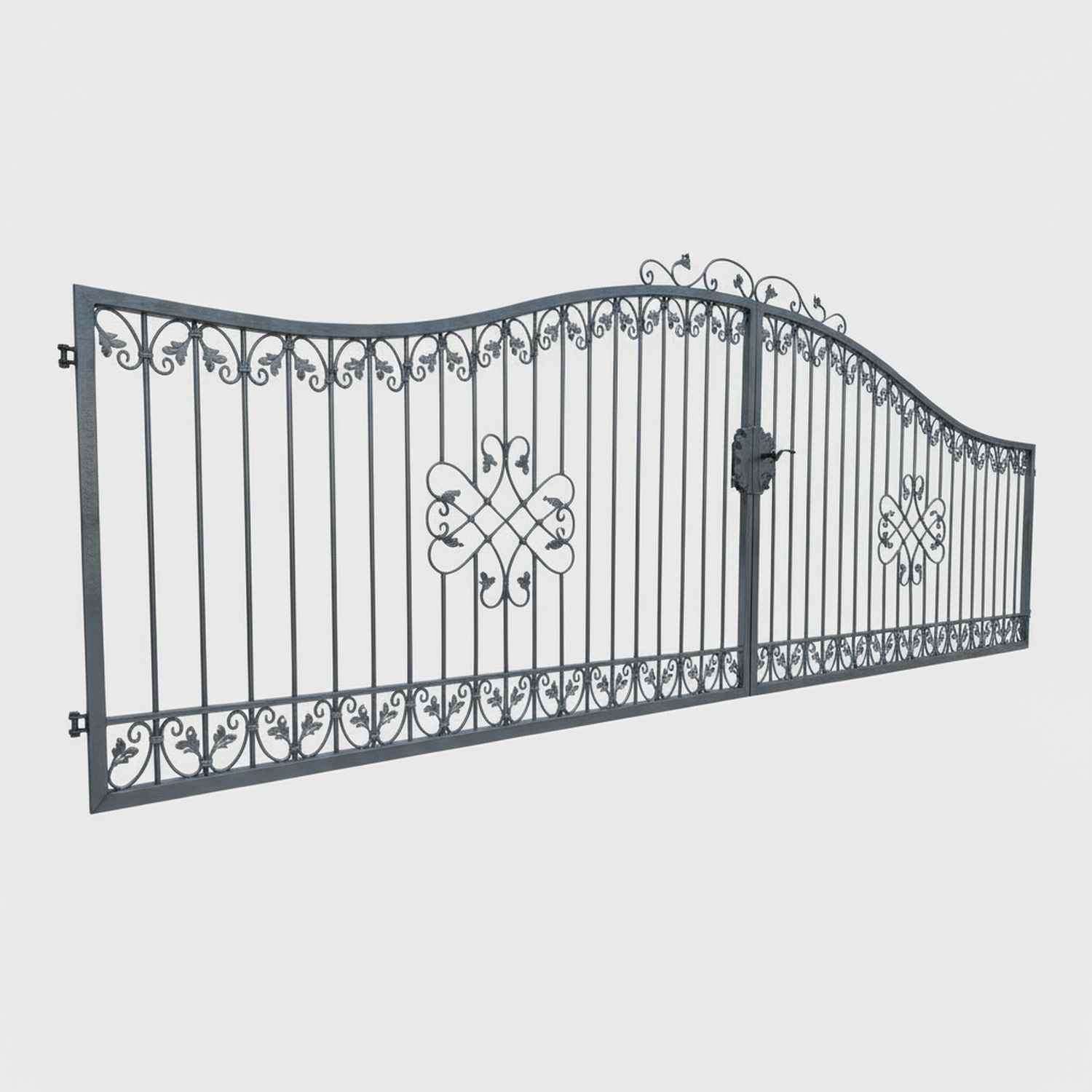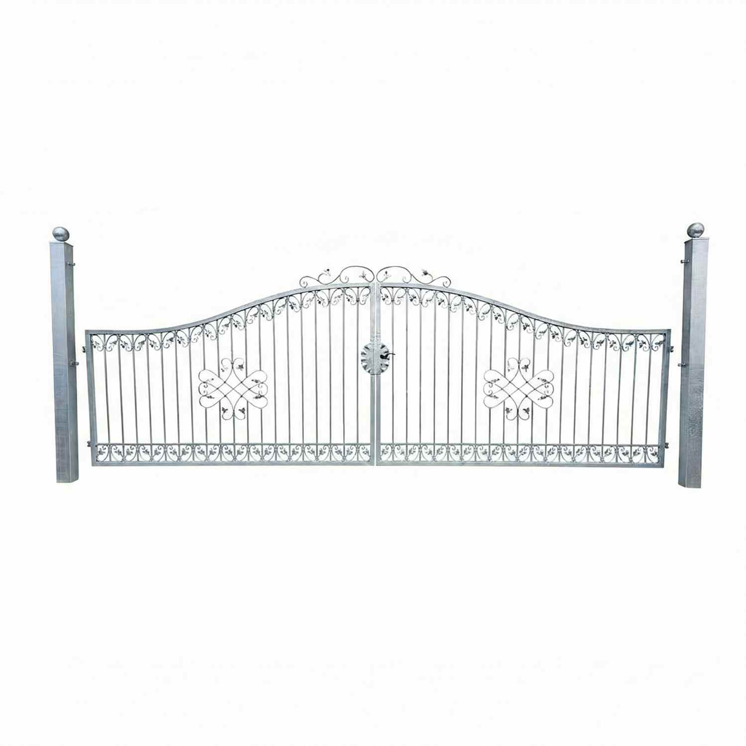 Gartentor Hoftor Einfahrtstor Metall Schmiedeeisen Monaco-GT Premium Feuer Verzinkt Doppelflügeltor Rundbogen