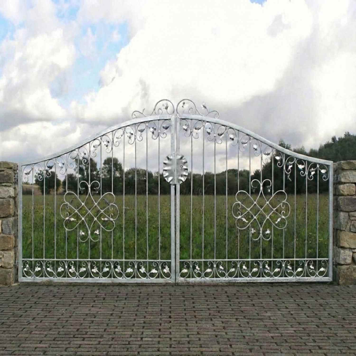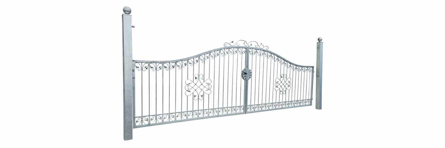Hoftore Gartentore Einfahrtstore Monaco, GABELLA™ solide Marken-Qualität, hochwertige Handarbeit vom Hersteller, Aufwendige Füllung mit leichten Barockschnecken Schmiedeeisen, C-Schnecke von Hand ausgeschmiedet mit Tiefziehblättern, aufwendig geriffelte Zierbundung.