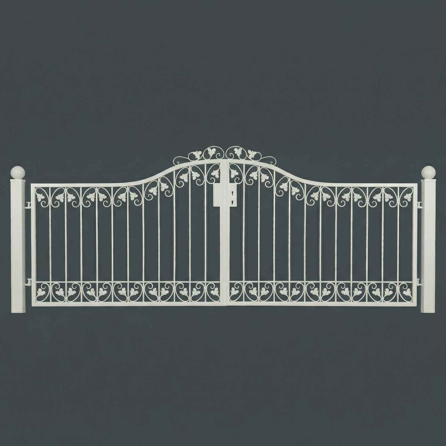 Hoftore Gartentore Einfahrtstore Monaco, GABELLA™ solide Marken-Qualität, hochwertige Handarbeit vom Hersteller, Aufwendige Füllung mit leichten Barockschnecken Schmiedeeisen, C-Schnecke von Hand ausgeschmiedet mit Tiefziehblättern, aufwendig geriffelte Zierbundung.