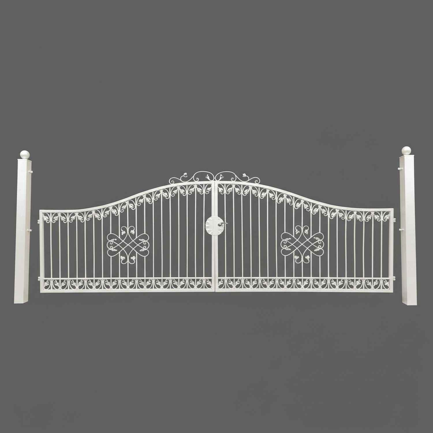 Gartentor Hoftor Einfahrtstor Monaco-GT Auswahl Verzinkt Metall Premium m. Pfosten 100 Schmiedeeisen Doppelflügel