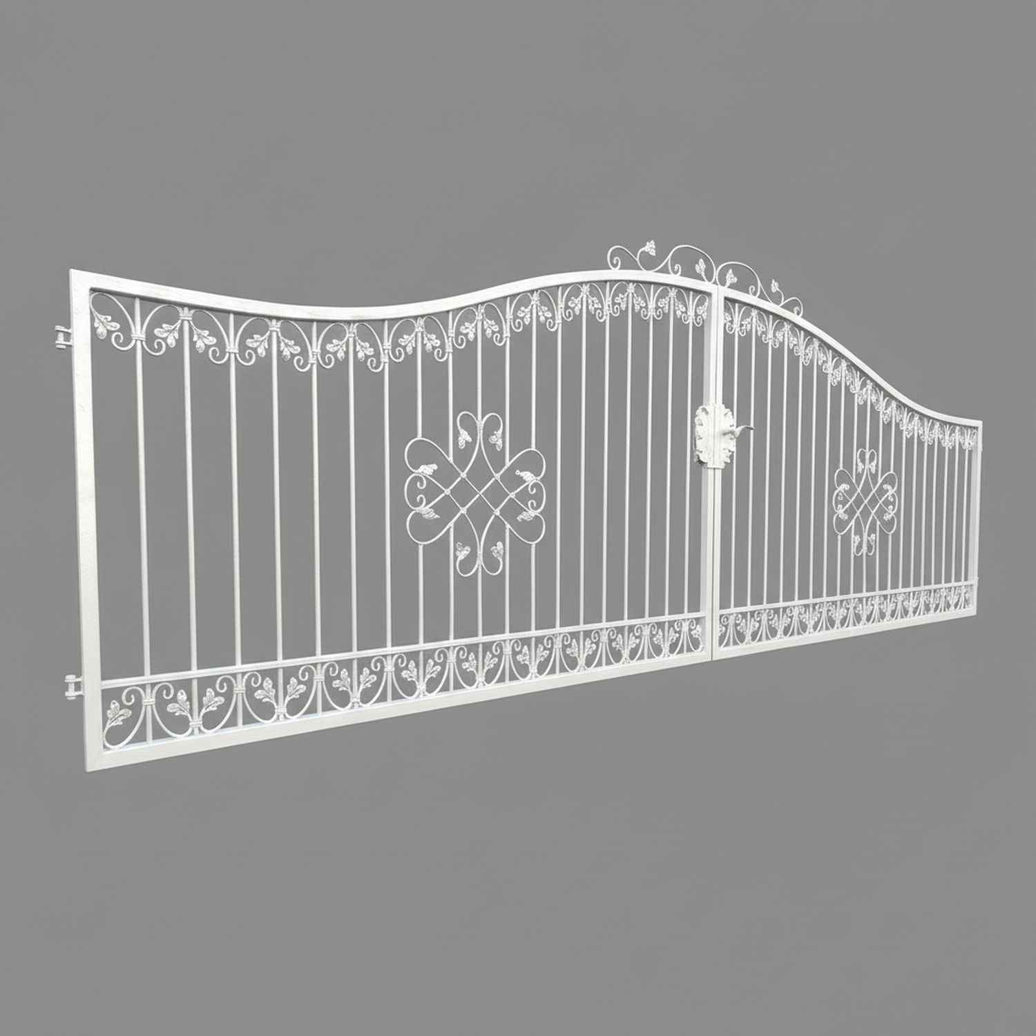 Hoftore Gartentore Einfahrtstore Monaco, GABELLA™ solide Marken-Qualität, hochwertige Handarbeit vom Hersteller, Aufwendige Füllung mit leichten Barockschnecken Schmiedeeisen, C-Schnecke von Hand ausgeschmiedet mit Tiefziehblättern, aufwendig geriffelte Zierbundung.