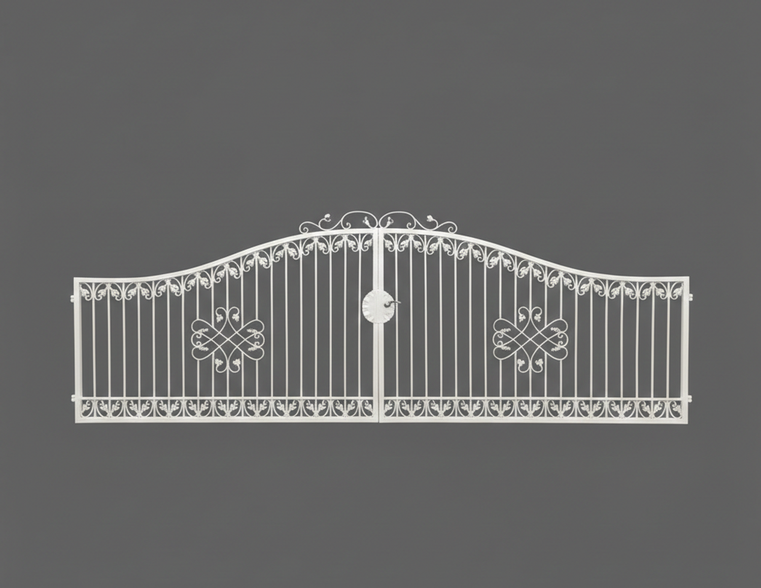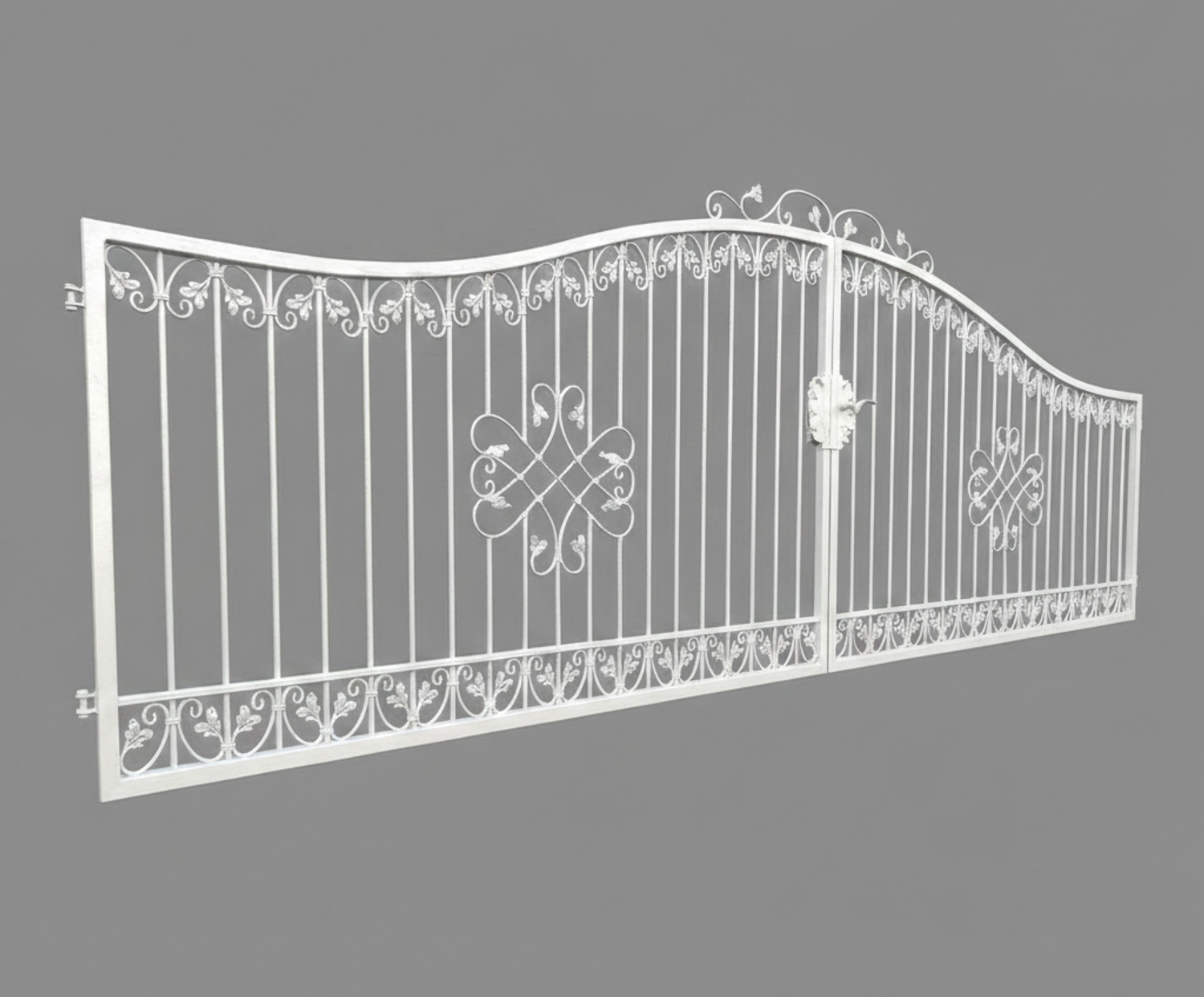 Hoftore Gartentore Einfahrtstore Monaco, GABELLA™ solide Marken-Qualität, hochwertige Handarbeit vom Hersteller, Aufwendige Füllung mit leichten Barockschnecken Schmiedeeisen, C-Schnecke von Hand ausgeschmiedet mit Tiefziehblättern, aufwendig geriffelte Zierbundung.
