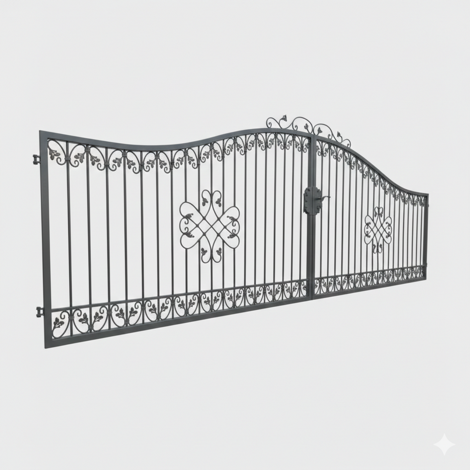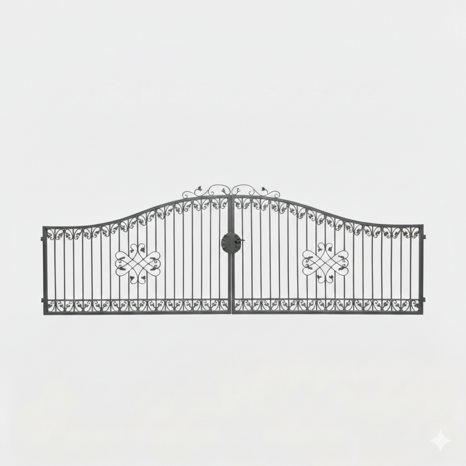 Hoftore Gartentore Einfahrtstore Monaco, GABELLA™ solide Marken-Qualität, hochwertige Handarbeit vom Hersteller, Aufwendige Füllung mit leichten Barockschnecken Schmiedeeisen, C-Schnecke von Hand ausgeschmiedet mit Tiefziehblättern, aufwendig geriffelte Zierbundung.