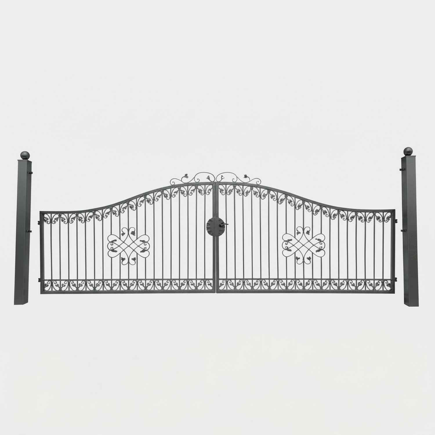 Gartentor Hoftor Einfahrtstor Monaco-GT Auswahl Verzinkt Metall Premium m. Pfosten 100 Schmiedeeisen Doppelflügel