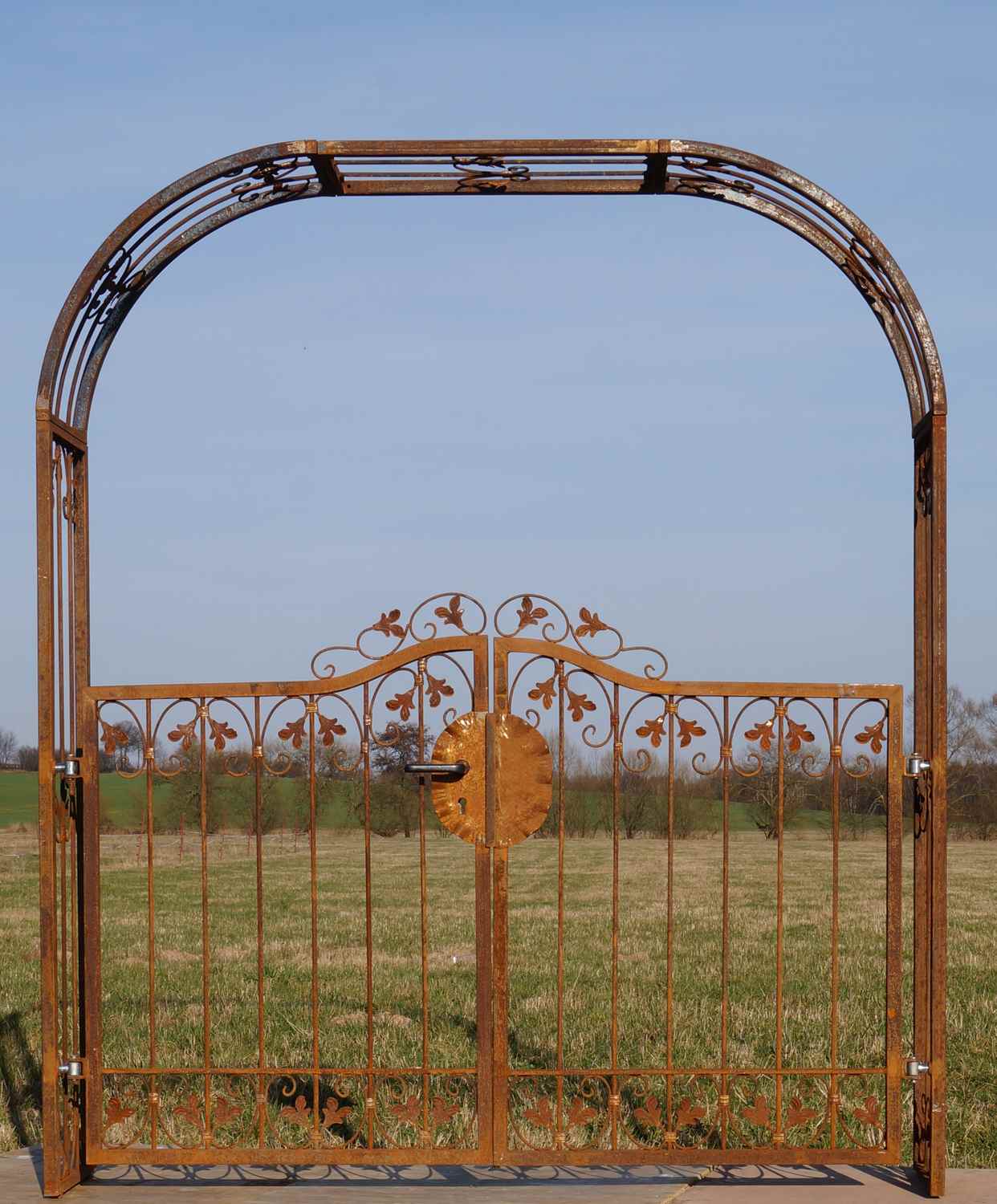 Tor Gartentür Pforte Rosenbogen massiv Tür Monaco-RBGT-RBS 140/200/30S Roh Rost