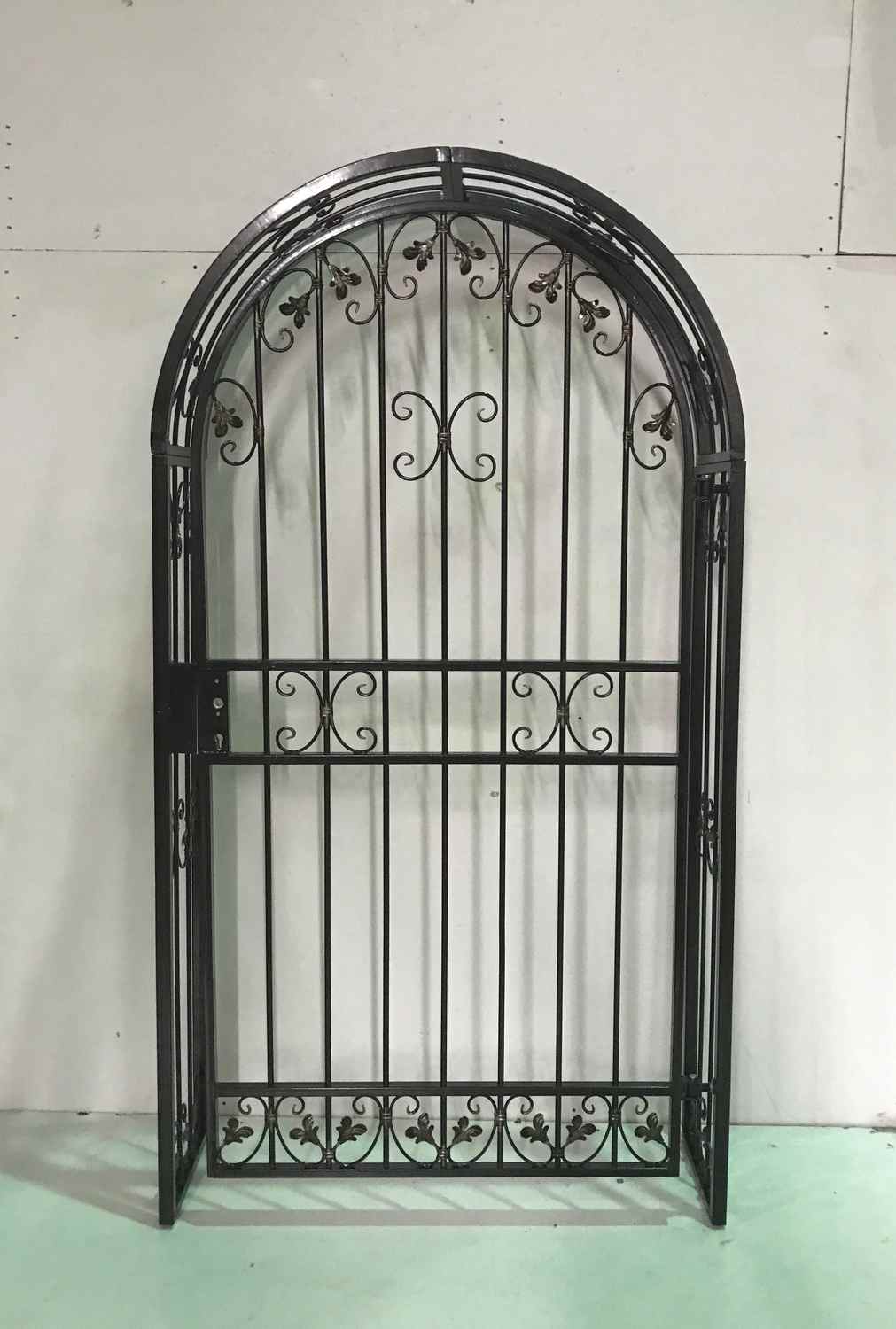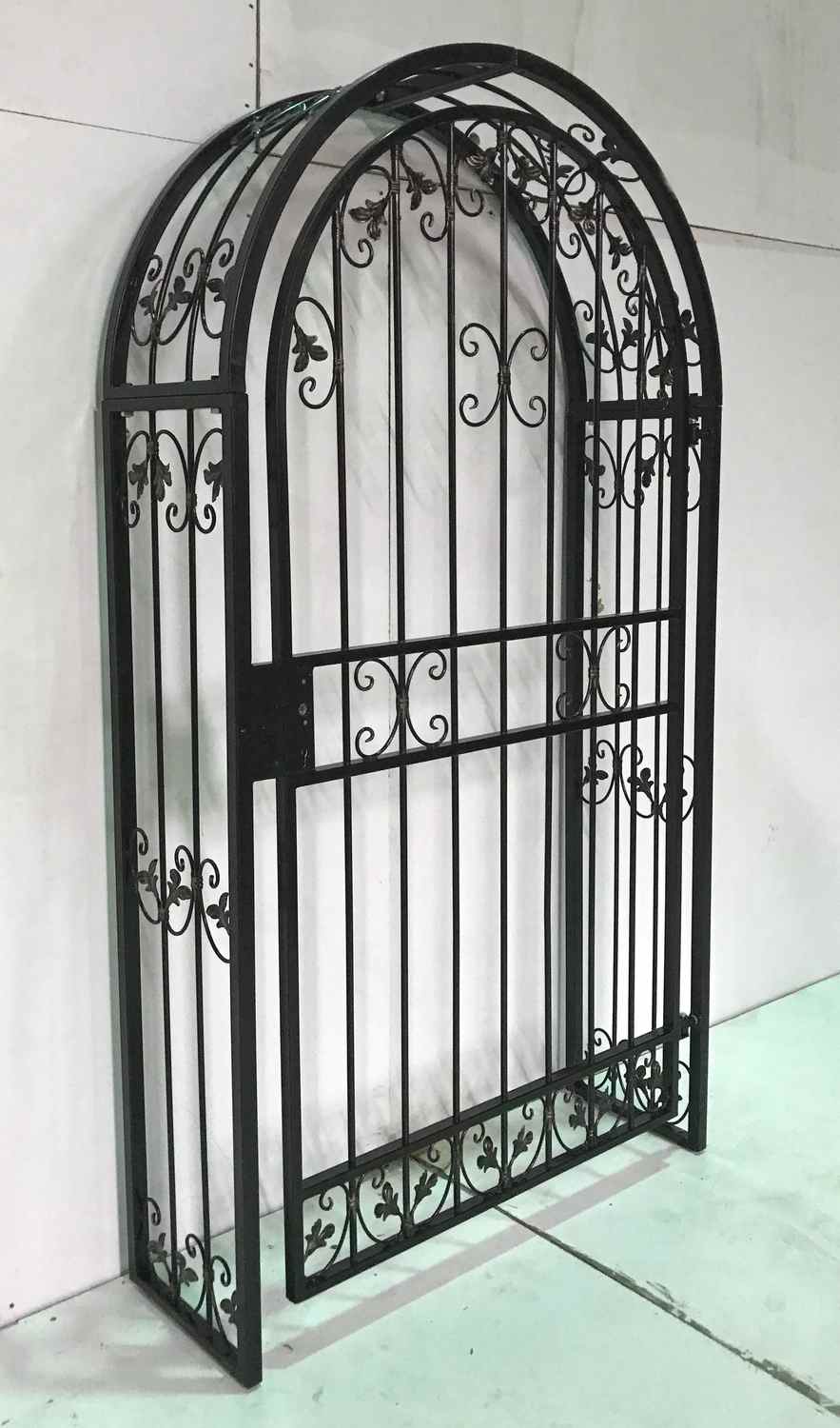 Rosenbogen mit Tür Monaco-RBGT-RBS 100/200, GABELLA™ solide Marken-Qualität, hochwertige Handarbeit vom Hersteller, Monaco: Aufwendige Füllung mit leichten Barockschnecken Schmiedeeisen, C-Schnecke von Hand ausgeschmiedet mit Tiefziehblättern, aufwendig geriffelte Zierbundung.
